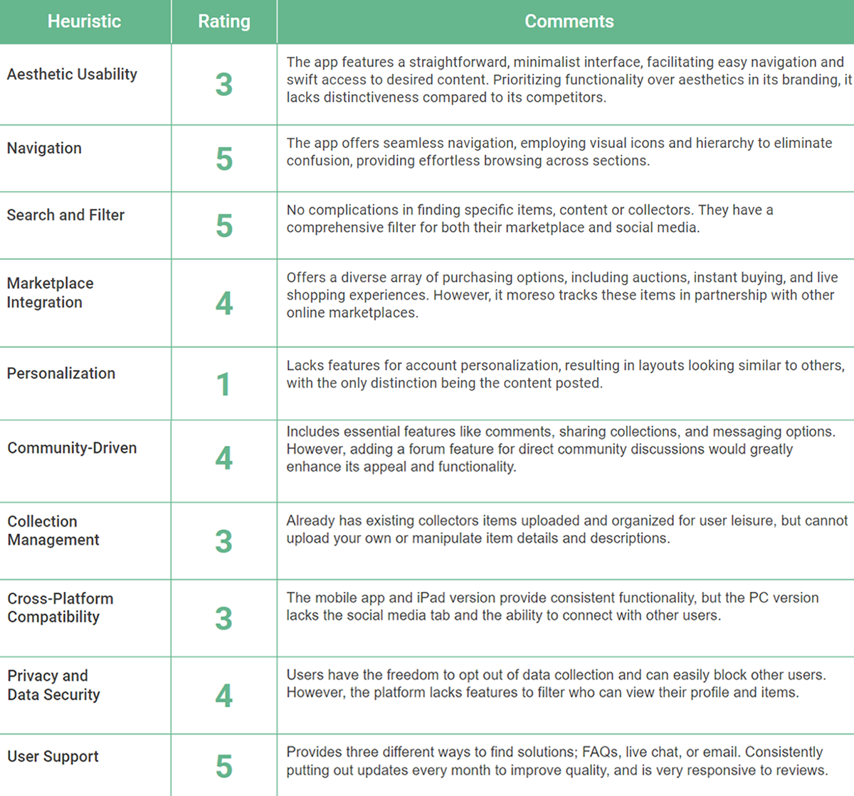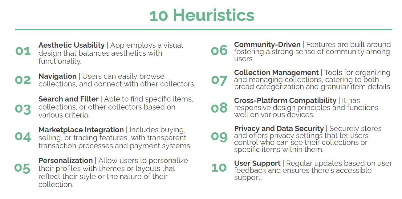 After the user research, I reviewed Collectr's interface, an app with a similar purpose, using heuristic evaluation to spot any usability problems based on common guidelines I would use for Boxwork.