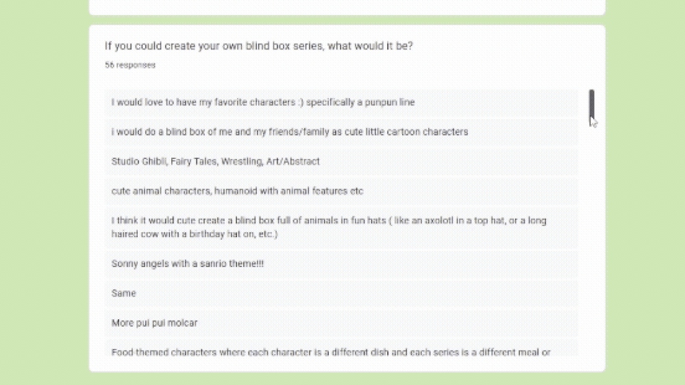 The last question was added as a treat for those who completed the survey, I enjoyed seeing all the different answers and ideas that people could come up with!