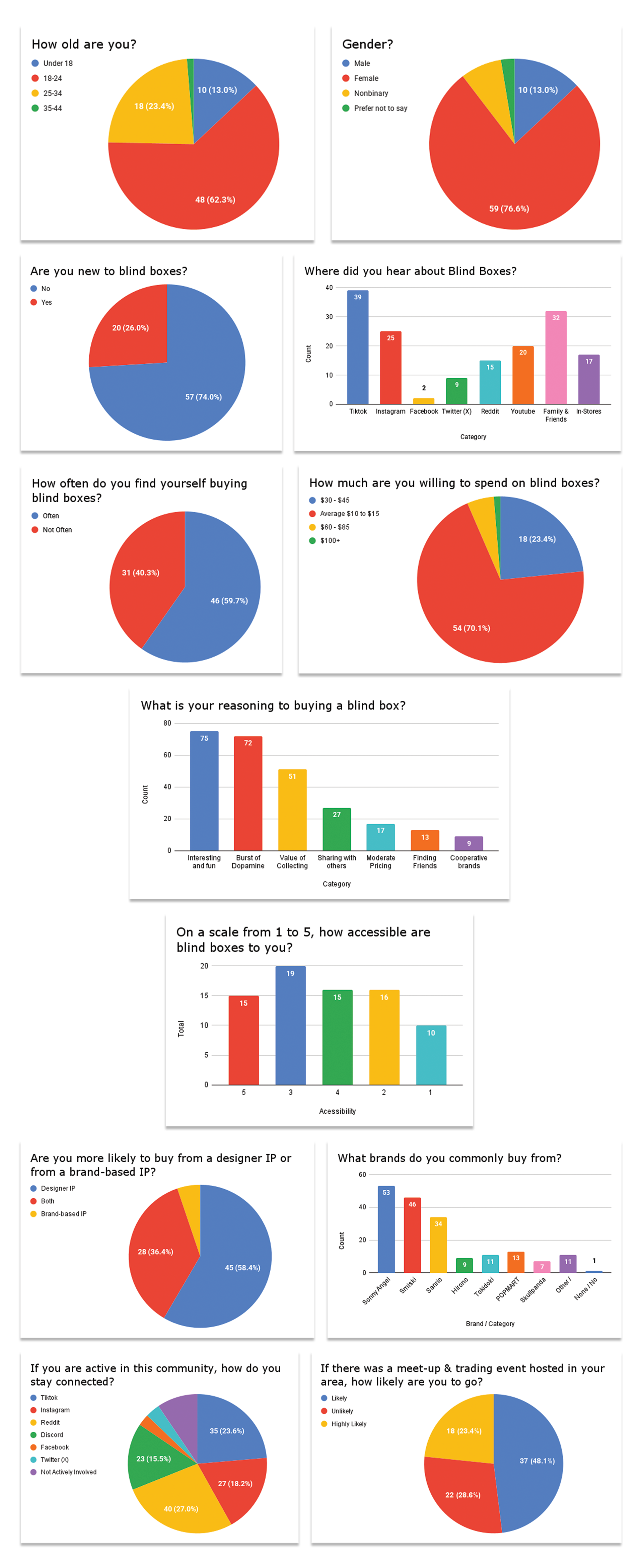 Before starting on my design, I conducted a quantitative research survey consisting of 13 questions that I shared to different communities across Reddit, Discord and Instagram. This gave me a better understanding on a wide range of user opinions and preferences, in total I received 75 responses.