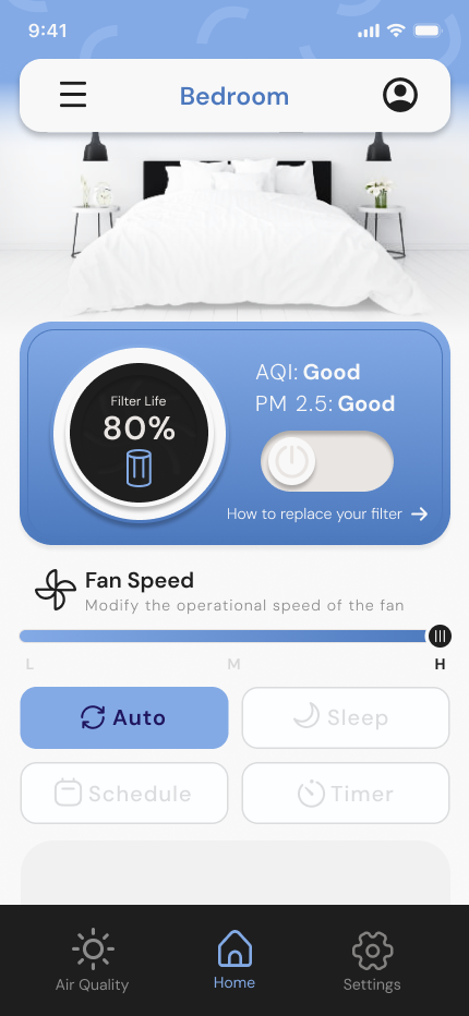 Developed a centralized application for Levoit products, specifically focusing on their smart air purifiers. The goal was to ensure seamless integration and intuitive navigation, while maintaining alignment with Levoit's brand visuals. Additionally, I prioritized understanding air quality conditions to enable users to maximize the effectiveness of their devices.